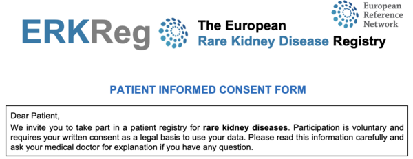 Since 2022, new ERKReg informed consent forms have been in place. These were developed by the European Joint Programme on Rare Diseases (EJP RD) and should be used in all ERN registries. We have adapted the generic template according to the ERKReg needs. There are two ERKReg informed consent form versions available for (i) parents/legal representatives and (ii) adult patients. We have the documents available in all European languages.